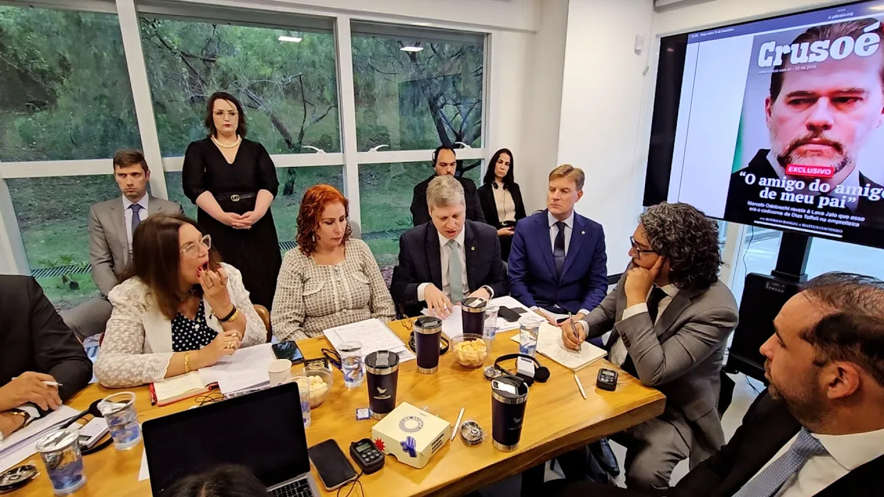 e tô aqui por isso que o Marcel pediu que eu estivesse aqui para tratar desse assunto como Presidente da Comissão eh um requerimento para que nós pudéssemos solicitar uma audiência pública chamando o Felipe Martins justamente para falar das incoerências relacionadas a os registros das da visita do Felipe Martins aos Estados Unidos que foi o que resultou na prisão preventiva dele em 2024 nós recebemos E aí eh o deputado Marcel encaminhou E aí nós justamente por essa questão eh da medida cautelar que haveria contra o Felipe Martins nós Resolvemos consultar o STF eh justamente para que