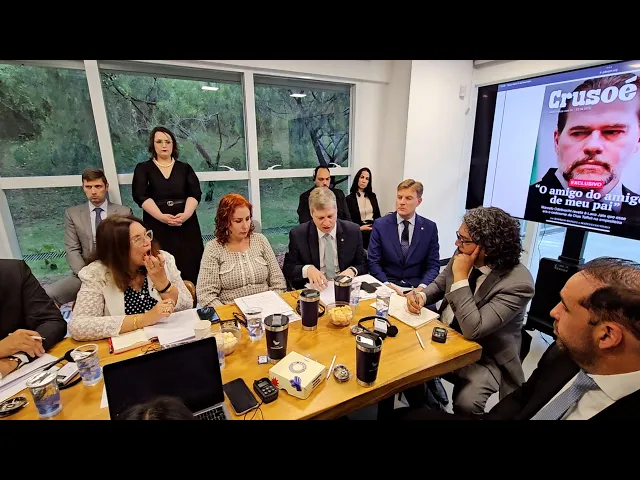 senhor 5 minutos com senhor palavra pode vem para cá você quer Sentar aqui ou aqui Senador Senta aqui no meu lugar F melhor não fica sentado de lado eu sento aqui você controla o tempo controla o [Música] tempo deixa eu tirar atinha depois [Música] Deputado bem Eu gostaria de agradecer o fato de vocês terem vindo e já fazendo o registro de que a população brasileira Eh não acredita na vida de vocês me lembro que eu estive junto com o deputado Portinho Senador Portinho Senador Girão e o Marcel vanen nós fomos os primeiros a ir lá