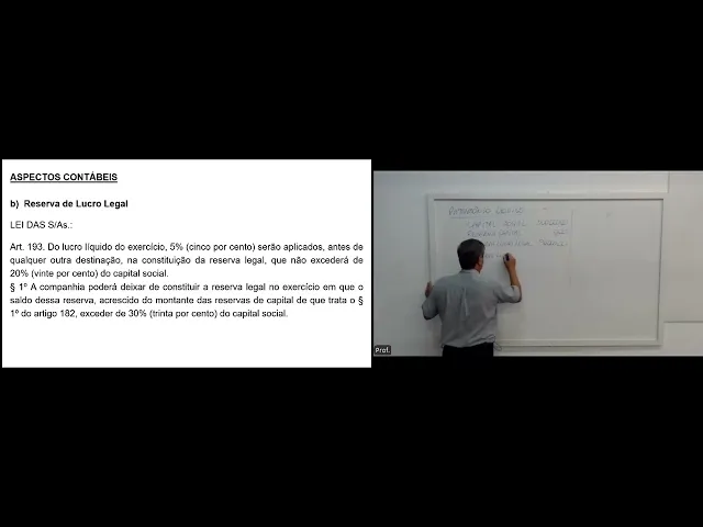 Olá pessoal chegamos a nossa última aula tá E hoje nós vamos falar da auditoria sobre o patrimônio líquido Ok então volta a repetir para vocês pessoal se vocês ficaram com alguma dúvida e algum dos Tópicos volta no tópico revisa O tópico Leia assista novamente o tópico pesqu em nas bibliografias que a gente recomenda para vocês bom tá que vocês sabem terão avaliações tá e eu espero que vocês tenham curtido o máximo possível aí de todas as aulas e aproveitado e aproveite isso aí na vida profissional de vocês então hoje nós iremos falar sobre auditoria sobre patrimônio líquido essa parte de auditoria esse tópico ele é mais digamos burocrático do que qualquer coisa tá então é análise em cima de documentações e lógico em cima da das normas princípios e e leis contábeis que existe falando a respeito tá então ela é bem mais burocrático do que mão na massa vamos dizer assim bom então nós vamos falar sobre auditoria so o patrimônio líquido qual é a composição capital social a conta capital social a conta capital social integralizar reserva de capital é um grupo de contas que pode ser formado por quatro cinco tipos de contas ajuste de avaliação patrimonial reserva De reavaliação reserva De lucros essa reserva de lucros ela pode ter várias subdivisões como eu falando reserva de lucro legal estatutária para contingências e reserva de lucro a realizar entre outros a própria reserva de lucro tá que são os lucros acumulados prejuízos acumulados e ações em tesouraria tá então vocês vejam que a conta capital social integralizar prejuízos acumulados e ações em tesouraria são valores negativos Então são contas que entram no patrimônio líquido como contas retificadores Então os valores dessas contas são negativos dentro do pl tá elas abatem o PL então basicamente eu vou resumir bem essa parte aí tá certo objetivo da auditoria é realmente conferir a correta contabilização desses itens que existe dentro da patrimônio líquido tá e de acordo com as legislações vigentes então então o procedimento de auditoria Resumindo tudo isso tá é analisar a movimentação de cada conta do patrimônio líquido tá e examinar principalmente documentação e se essas documentações ou se a contabilização está realmente de acordo com as documentações apresentadas tá bom ok então no caso por exemplo se existir distribuição de lucro e C tal certo tem que verificar se isso aí está de acordo com eh o estatuto da sociedade da da sociedade anônima e principalmente lógico com as atas das reuniões existentes Enfim gente é mais um trabalho realmente burocrático é mais um trabalho de análise de documentações e verificar a real contabilização desses fatos existentes na documentação tá um dos aspectos legais mais importantes tá é a conta reserva de lucro legal então essa reserva de lucro legal gente tá a lei das SAS dentro desse artigo no 193 o que que ele fala do lucro líquido do exercício 5% serão aplicados antes de qualquer outra destinação olha o que ele fala 5% serão aplicados antes de qualquer destinação na Constituição de reserva legal que não excederá 20% do capital social a companhia poderá deixar de constituir a reserva legal no exercício em que o saldo desta reserva crescido do montante da reserva de tal de que trata o parágrafo primeiro do Artigo 18 30% do capital social nós não entendi nada os vamos para a prática vamos entender então Olha só pessoal vamos imaginar que a empresa ela possua um patrimônio líquido e ela possui aqui uma conta capital social R 500. 000 reserva de Capital zero [Música] ela possui aqui ó reserva de lucro legal ela possua vamos supor R 90. 000 ela possui aqui uma reserva de lucro imaginando aqui ó uma reserva de lucro de sei lá 300.