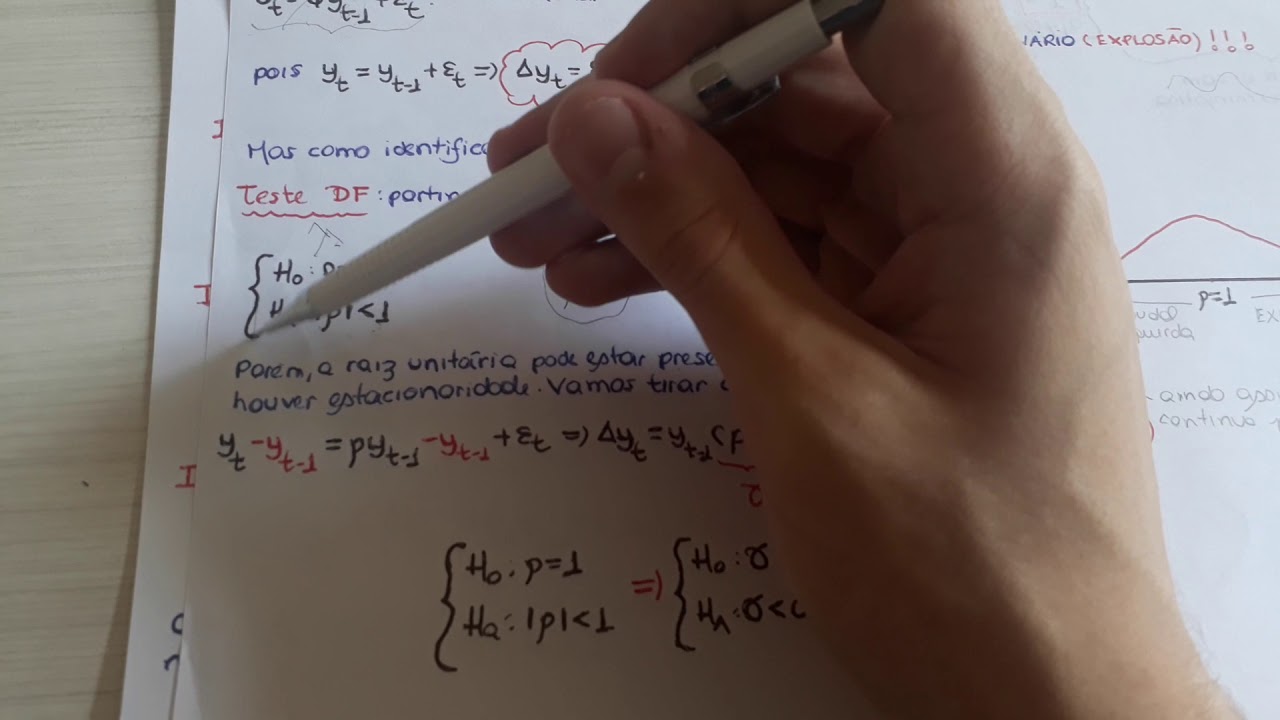 o Olá pessoal nesse vídeo vamos falar sobre estacionariedade e Raiz unitária dá para entender o conceito de raiz unitária vamos ver um exemplo e vamos supor um processo auto-regressivo de primeira ordem dada por y t = c 1y te menos um mas é ter o termo defasado de y pode ser representado pelo polinômio de defasagem lyp colocando o primeiro termo do lado esquerdo da equação e isolando y nós temos yt que multiplica um menos fiz um L = Y tem os elementos que estão dentro do parênteses formam a equação característica ou simplesmente polinômio característico objetivo