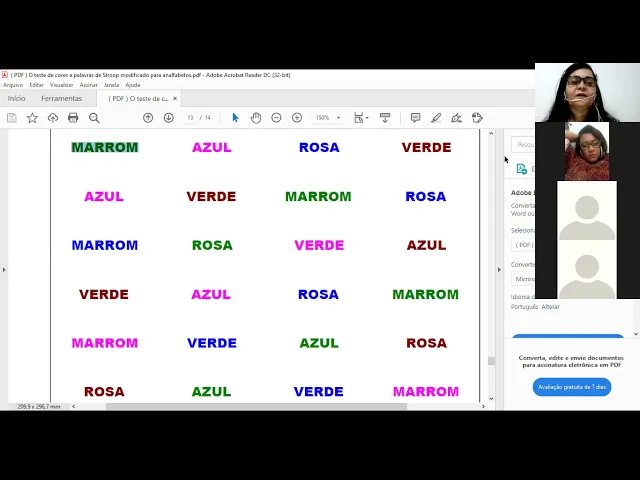 se eu mandar coração perto o vídeo se pode explicar tá me explica para ela aí o teste o seu mundo aqui o som Ai Jesus amado e olha só esse esse teste ele tem uma barra interessante que assim quanto menos você sabe ler a palavra mais você acerta o processo linguístico é então assim como você já sabe ler você sabe que o marrom e veio tem uma ROM verde aí né então quando você não sabe ler você diz o que desde rosa azul marrom rosa marrom verde azul entendeu então você tem esse eles têm o