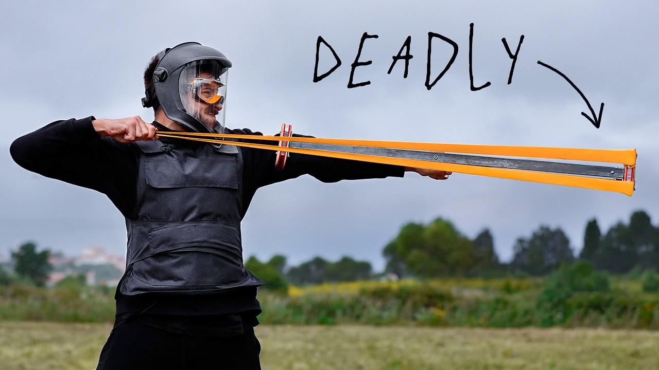 how dangerous is a boomerang and when I say Boomerang you're maybe thinking about the colorful ones the ones that come back sorry but what I'm actually referring to is hunting boomerangs they've been used to hunt for thousands of years they fly for hundreds of meters and they hit stuff hard and also they don't come back hopefully and so I want to figure out how boomerangs work make a lethal one and then test the range and the Damage against a bunch of different targets the material I'm going to use to make the boomerang is polycarbonate which