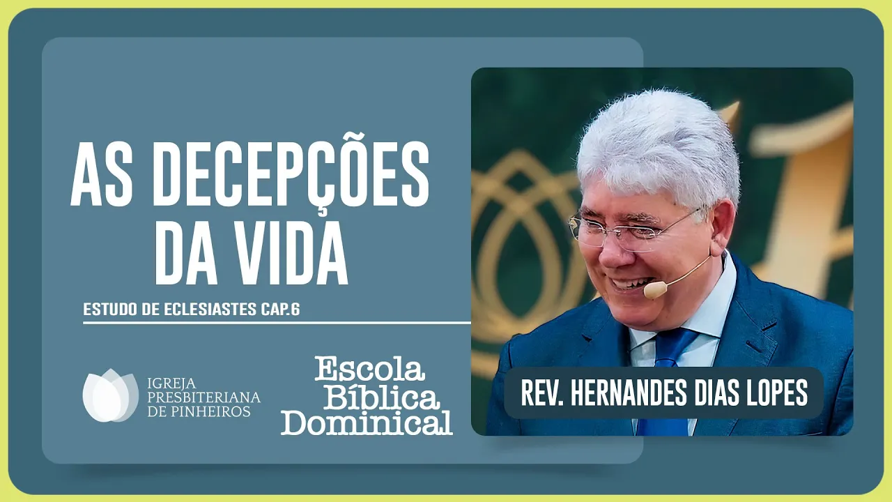[Música] muito bem meus irmãos nós vamos dar início Então à nossa escola bíblica dominical deste domingo 28 de julho de 2024 Como estamos fazendo exposição de Eclesiastes hoje nós vamos expor o capítulo 6 então abra a sua Bíblia comigo Eclesiastes Capítulo 6 Nós acolhemos também com muito carinho as pessoas que estão nos acompanhando virtualmente Eclesiastes Capítulo 6 lid do texto mantenha a sua Bíblia aberta por favor nesta passagem comigo Salomão assim escreve há um mal que vi debaixo do Sol e que pesa sobre os homens o homem a quem Deus conferiu riquezas bens e Honra