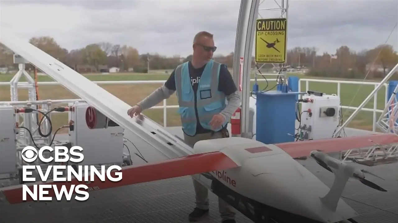 here's something shoppers who live within a 50-mile radius of walmart headquarters in arkansas can now get items dropped off by drone the retail giant is teaming up with the drone delivery company zipline to parachute packages of goods to everyday shoppers cbs's aero barnett got an exclusive look while the supply chain backlog continues to choke ports and trucking routes many companies are now looking to the skies for solutions it's unbelievably exciting we've been working towards the state for many many years liam o'connor is zipline's chief operating officer we have done over 220 000 commercial deliveries in