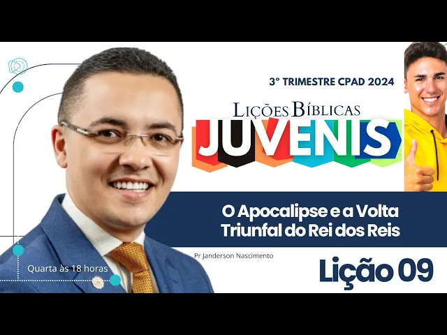 chegamos então na lição de número nove aqui da classe do juvenis Onde nós estamos trabalhando nesse trimestre sobre o texto de Apocalipse analisando aí uma abordagem panorâmica de todo esse livro na lição Nove essa lição que vai cair no dia primeo de setembro nós vamos abordar sobre o tema o Apocalipse a volta Triunfal do rei dos reis Ah eu espero muito contribuir com você nesta ministração para você iniciar bem a tua aula você pode iniciar por algum as bases bíblicas que a própria lição já traz e oferece para você a primeira base bíblica se localiza