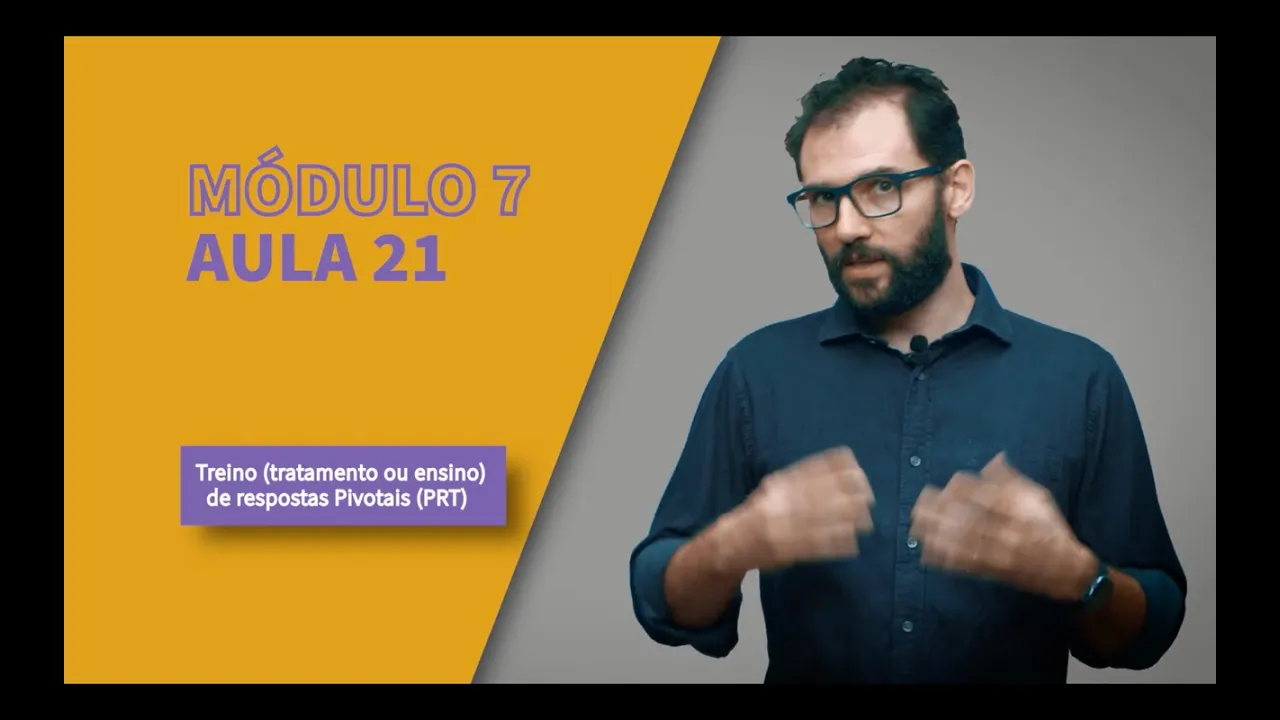 Módulo 7 aula 21 Uma vez que você já sabe o que são respostas pivotais, é importante nós falarmos do treino de respostas pivotais. A sigla que nós utilizamos é o PRT, que é o termo em inglês, a gente traduz o termo mas não traduz a sigla. O treino de respostas pivotais é um modelo que vai enfatizar a participação dos pais como os principais agentes de ensino ou de intervenção no trabalho que a gente está fazendo com a criança com TEA.
