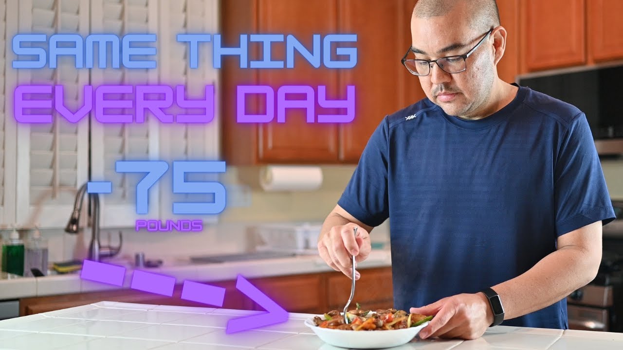 [Music] for the past 10 years i've eaten pretty much the same exact thing every day breakfast lunch and dinner on repeat you might think that this is boring and you're absolutely right but it's boring on purpose one of the things that i appreciate most about living a simple lifestyle is putting as many decisions as possible on autopilot that's why i wear the same thing every day do the same workouts every day stick to a consistent work schedule each day and stay with my wife just kidding it's because her parents are rich but one of the