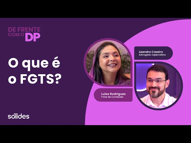 não importa o ramo da sua empresa o tamanho do seu negócio ou quantos funcionários você possui o depósito do FGTS é uma obrigatoriedade a todo empregador com seus trabalhadores celetistas vem com a gente entender como ele funciona e porque toda empresa precisa ter atenção bem-vindo ao de frente com DP seu ponto de informações da Solid sobre departamento pessoal eu sou a Luísa Rodrigues do time de conteúdo da solids e hoje eu tenho aqui uma pessoa que entende tudo desse assunto com vocês Leandro e aí Lu tudo bem obrigado pelo convite mais uma vez é bom