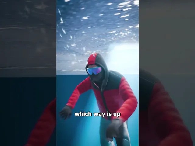 if the ice starts to crack you should immediately spread out your arms before you start falling this will allow you to grab onto the ice and prevents you from being fully submerged but if you do fall in you might become confused and lose track of which way is up and in this Panic State you could end up swimming away from the opening trapping yourself under the ice if this happens stay calm and look for light this is usually where the hole is is