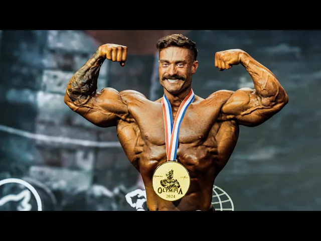 yourb vice president Mr Tyler [Music] Manion Gentlemen please take the first place award the Olympia gold medal the first place check for $50,000 and the title of 2024 classic physique Olympia Champion to our winner winning isn't everything you know it's about the journey it's about who you become along the way it's about the relationships and the people that you get to share that Journey with as well and six time Olympia Champion Chris bomster good stuff man good stuff congrat Buster good stuff he and uh dino have a great relationship s mhm all the guys there's
