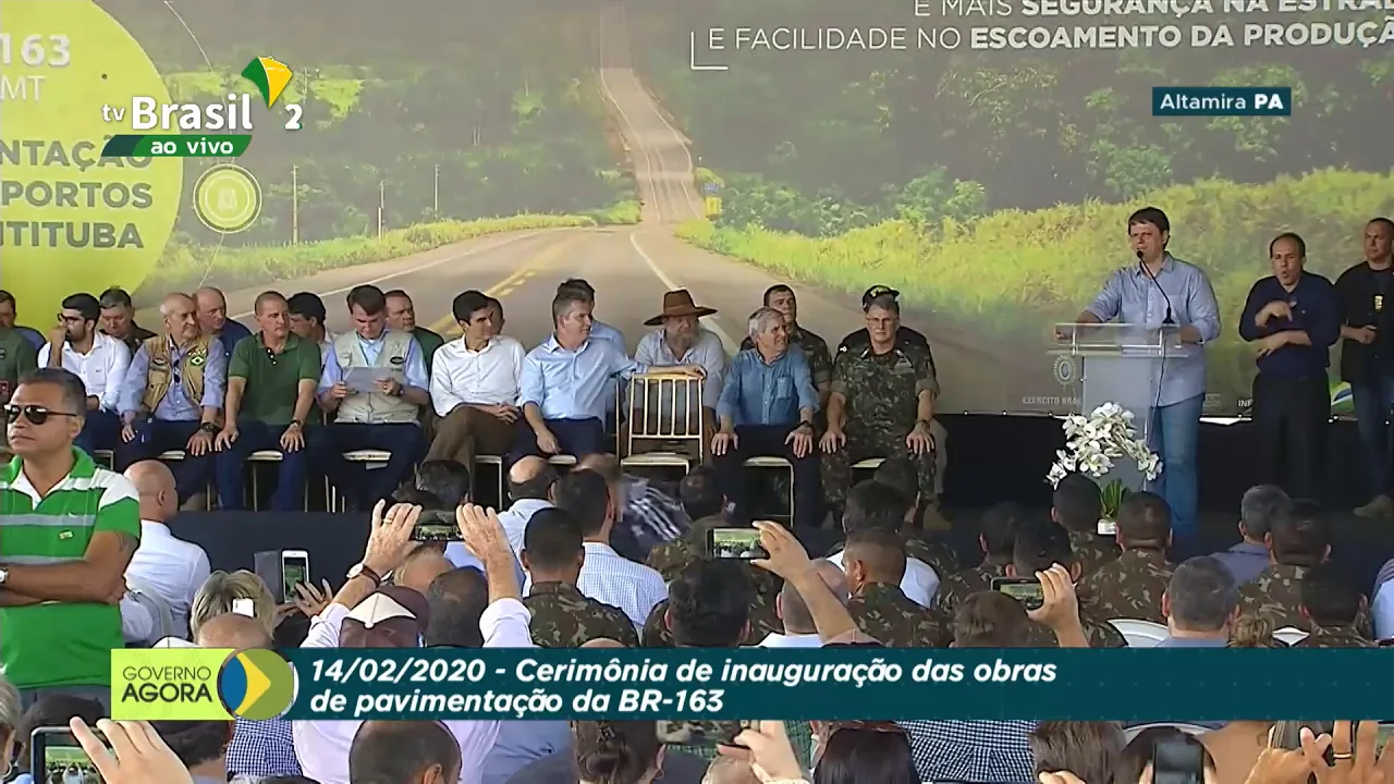 estender os meus cumprimentos aos amigos de altamira particularmente cachoeira da serra castelo dos sonhos dos nossos cumprimentos que maneira muito efetiva [Aplausos] meu caro presidente [Música] hoje é um dia extremamente importante um dia histórico como aqui já foi dito pelo mauro aqui já foi dito pelo tarcísio o momento do fechamento de um ciclo de mais de 40 anos onde a partir da lógica de integrar para não entregar abrindo estradas nesta região esperou-se por décadas que pudéssemos aqui estar nesta oportunidade para ver a conclusão da pavimentação ligando o estado do mato grosso neste momento até o