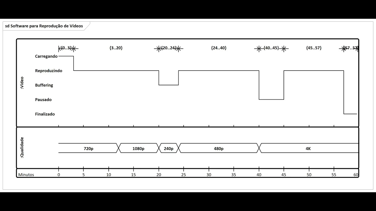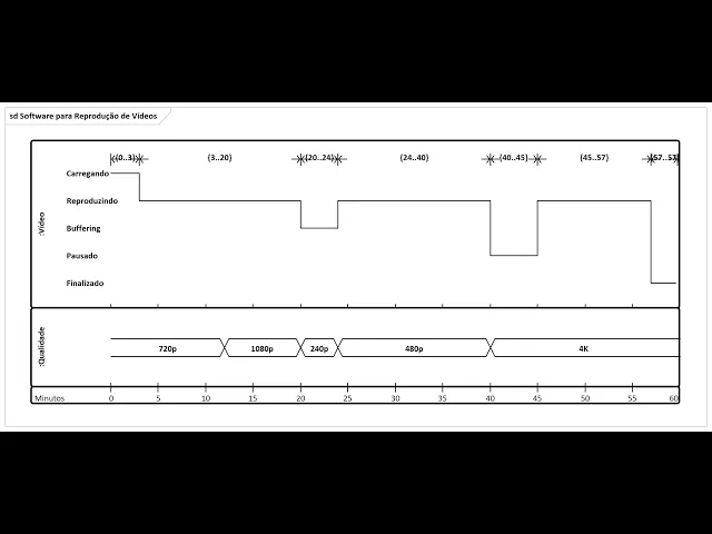 Ah aqui nós podemos ver que os valores são de alta qualidade e alta qualidade total full HD durante esse período mas mas aí se passa pro valor de 240p que é baixa a qualidade então o vídeo passa para o estado buffering Porque é necessário carregar mais vídeo antes de apresentar porque a qualidade de transmissão ou a qualidade eh de representação é baixa depois eu melhoro a qualidade do meu vídeo ah da minha qualidade transmissão do meu vídeo e eu passo novamente pro estado reproduzindo eh por algum motivo eu resolvo dar uma pausa no meu vídeo