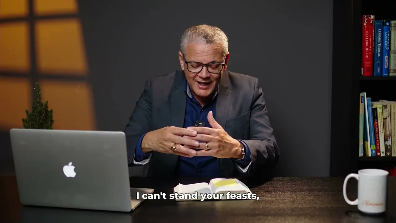 emocional desestressar e e tem muitas coisas mas Deus tá dizendo Olha eu eu eu tô cansado disso Deus tá dizendo assim Exatamente isso Deus está dizendo Exatamente isto E aí precisamos perceber o que é que Deus diz desta desse ajuntamento de pessoas que não tem como objetivo principal cultuar oo Deus único e verdadeiro a gente tem outras motivações eu não posso ter nenhuma outra motivação Deus diz eu odeio eu detesto as festas de vocês o encontro de vocês por quê Porque o encontro de vocês não tem como objetivo único principal verdadeiro de me adorar vocês