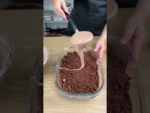 pessoal vou começar aqui destruindo o nosso bolo fazer isso no bolo inteiro bom pessoal meu bolo já está todo esmagadinha aqui aqui eu vou adicionar quro xícaras de creme de leite uma xícara de leite em pó misturando o cacau viu uma xícara aqui também uma caixinha viu de leite condensado ó pessoal tá batidinho aqui e vamos colocar no recipiente aqui pega aqui e vamos estar colocando aqui cobrindo toda a Massa agora novamente pessoal o restante da massa que nós reser aqui né E vamos estar espalhando novamente e vai est colocando esse recheio aqui em cima