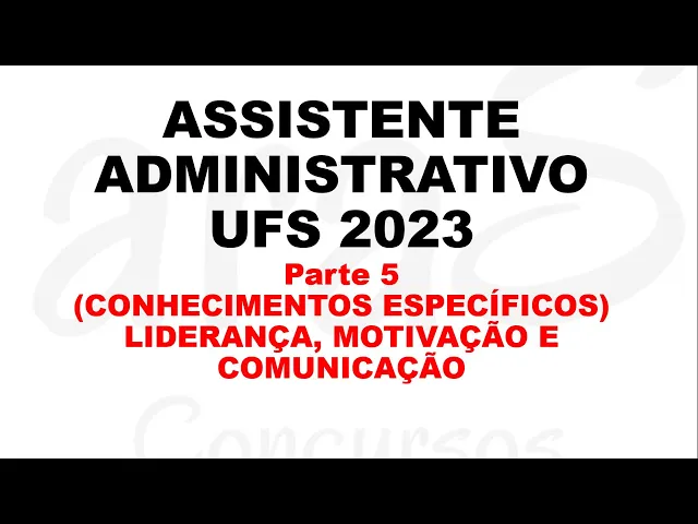 Fala galera sejam bem-vindos a mais um vídeo do nosso canal continuando aqui com os conteúdos para o concurso da Universidade Federal de Sergipe agora estamos aqui na parte CCO conhecimentos específicos falando de liderança motivação e comunicação assuntos que estão aí no seu edital Ok então vamos prestar atenção aqui ver essas informações que são bastante importantes Logo mais estaremos aqui vários vídeos com muitas questões todas da banca que vai ser cobrada aí no seu concurso Ok então vamos lá da banca Instituto AOCP né vamos começar aqui pela comunicação né não vamos botar aqui na ordem não