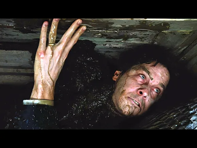 He feels water dripping on his face, and tries to get out of the casket. Panicked, Clint breaks the casket, which starts to break due to its poor quality. To our great relief, Clint is able to overcome the obstacles that stand in his way, and crawls out of his grave.