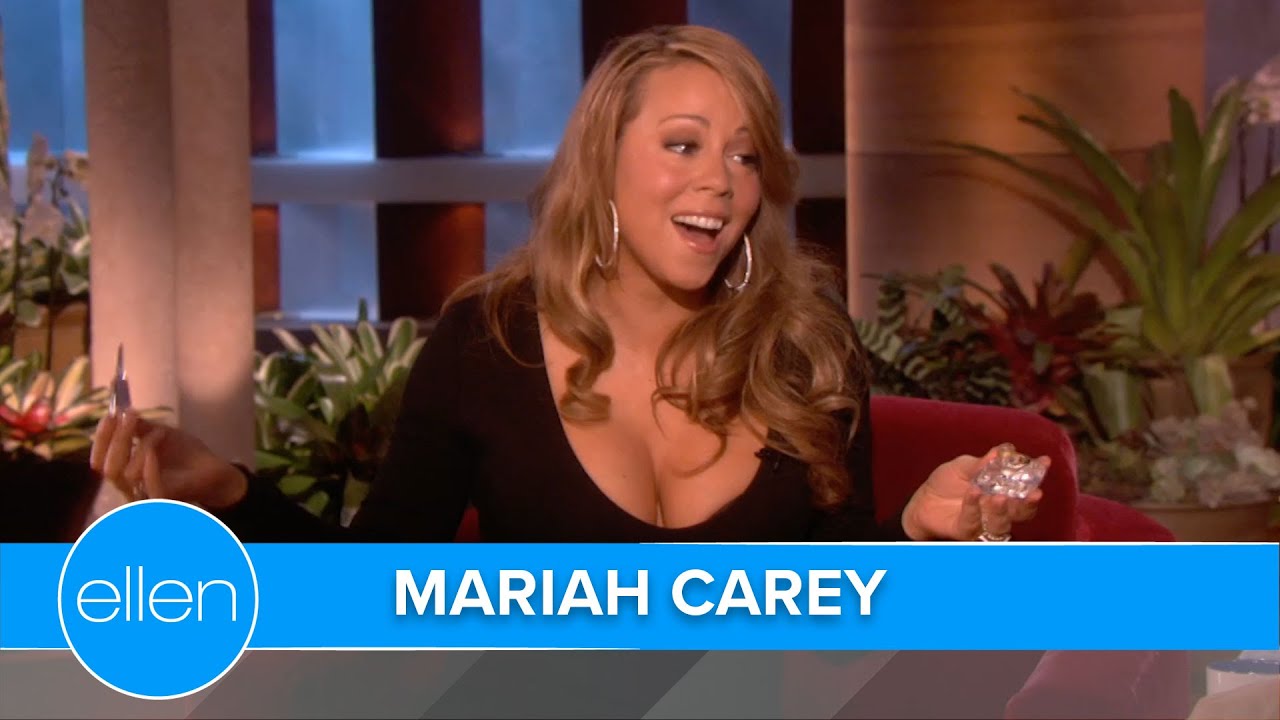 I have to thank the fans because they're the ones who stuck with me hold on one second we have we have to go to break and uh and then you're gonna sing but I just want to give you a quick gift before I know that growing up Mariah was a hard name for you because you can't find any keychains nothing I heard that story and I thought it was sad and uh I wanted to make sure that you have a keychain a little butterfly keychain of course the most important thing a flask with Mariah on