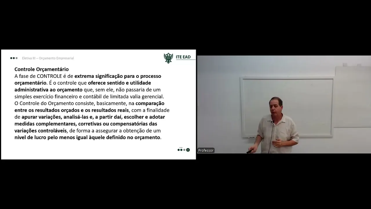 comum a gente vê nas empresas Mas pode até mesmo ser semanalmente obviamente que a depender do tipo de atividade da empresa A ideia é a gente analisar as variações determinar as suas causas e tomar as devidas medidas corretivas né Para que o resultado planejado seja aquele que efetivamente vai ser atingido ou superado porque assim a gente vai melhorar aquilo que Foi previamente estabelecido paraa empresa e sempre que a empresa consegue resultados melhores vai ser bom eh veja que esta fase chamada fase de controle ela é muito significativa pro processo orçamentário Porque é ela que vai