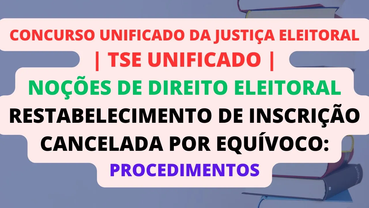 restabelecimento de inscrição cancelada por equívoco procedimentos e implicações a resolução do TS é número 23.659 de 2021 trata do restabelecimento de inscrição eleitoral cancelada por equívoco essa medida Visa corrigir cancelamentos indevidos que ocorrem por erro no lançamento de códigos referentes a situações como falecimento decisão da autoridade judiciária ou revisão do eleitorado a operação de restabelecimento é ental para garantir o direito de voto da pessoa cuja inscrição foi cancelada injustamente ela permite que a inscrição seja utilizada para todas as operações eleitorais restabelecendo assim todos os direitos políticos relacionados ao cadastro eleitoral por exemplo se uma pessoa