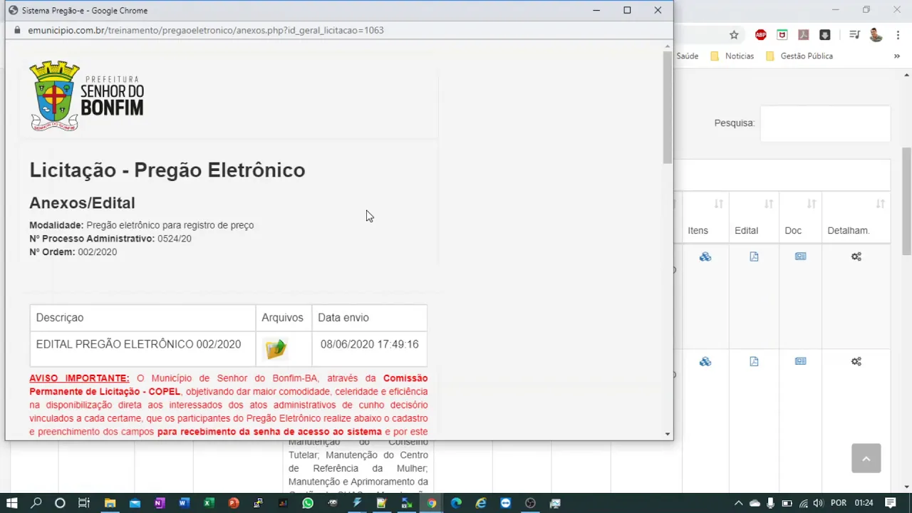 você clicar e poder participar e preencher as informações é necessário que você primeiro faça um cadastro e fica localizado exatamente aqui abaixo tem essa tabela sobre informações é básicas importantes do pregão mas o que é importante é que você acessa neste momento é a coluna edital você vai localizar qual é o a licitação cortesia participar e clicar é novo no edital a aplicar o ícone vai aparecer então esta tello você vai perceber que já existe então ai que o arquivo para você fazer um download na sua para sua máquina e você então fazer a leitura