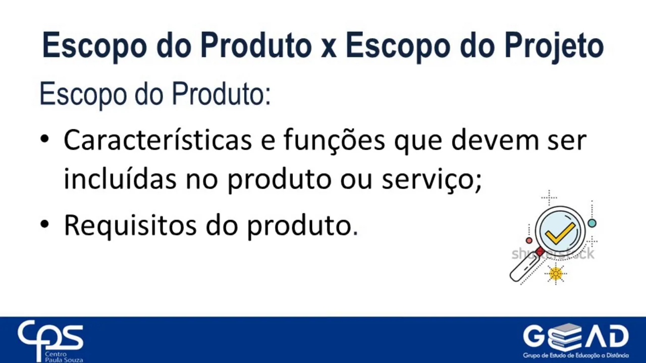 entre essas partes posteriormente ele é retrabalhado refinado e detalhado os corpo é um processo necessário para garantir que o projeto vai considerar todo e somente o esforço necessário para que o objetivo final do projeto seja atingido com êxito existem dois tipos de desculpa é o escopo do produto que deve ter características e funções que devem ser incluídas nesse produto ou serviço como por exemplo o tamanho desse produto o material que vai ser utilizado eventualmente a cor quais são os requisitos que esse produto precisa ter e o escopo do projeto que envolve a parte do trabalho