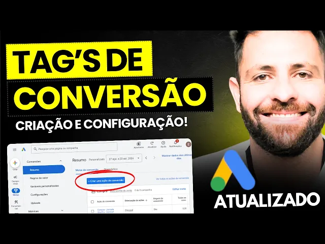 então faz de conta que eu tô aqui na página inicial do Google ADS você vai vir aqui em meta vai vir aqui em conversões clicou em resumo vai aparecer aqui para você ó nova ação de conversão Então vamos clicar aqui então a partir de agora a gente pode começar a criar a nossa primeira ação de conversão mas antes de criar uma ação de conversão O que que é uma tag de conversão O que que é uma ação de conversão vamos me entender então vamos começar entendendo o que seria uma ação de conversão Então vamos supor