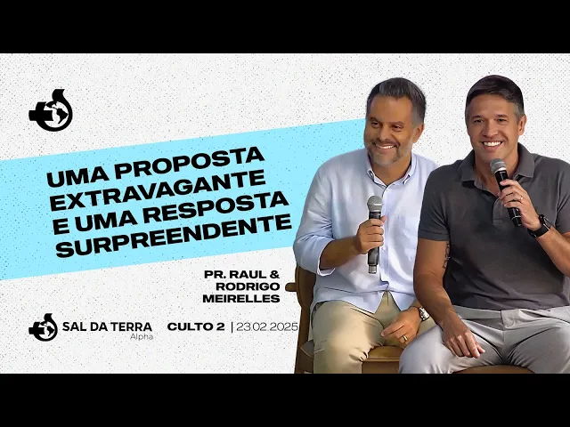 falar pede aí desculpa a expressão Mas você vai fazer uma caca muito grande você vai desviar completamente o propósito que Deus tem pra sua vida porque nunca é sobre um quê é sempre sobre um quem um onde então é isso que nós queremos trazer para você essa provocação porque uma uma proposta extravagante precisa de uma resposta surpreendente privilégio est aqui honra também né Eh e uma concidência de Deus aí porque eu vou voltar para São Paulo agora às 2:50 às 18 horas estô pregando sobre Salomão na minha igreja Eclesiastes 3 é o final de uma