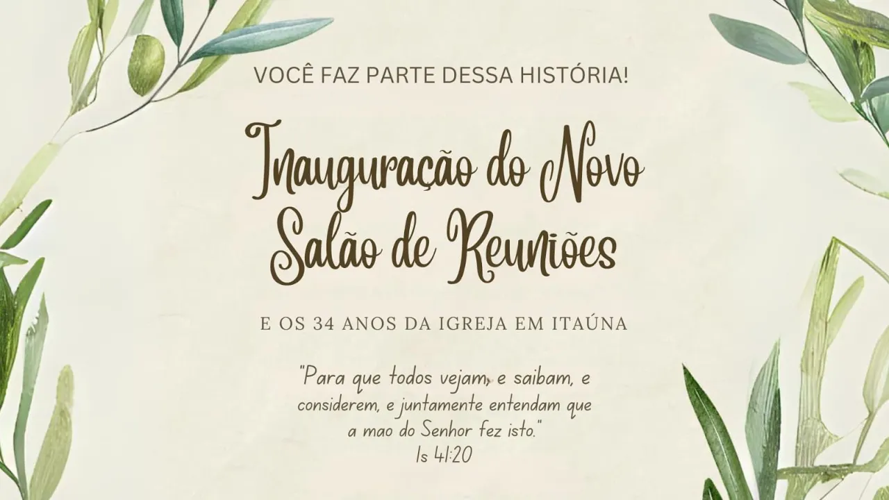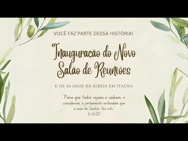 REUNIÃO DE INAUGURAÇÃO DO NOVO LOCAL DE REUNIÕES E OS 34 ANOS DA IGREJA EM ITAÚNA