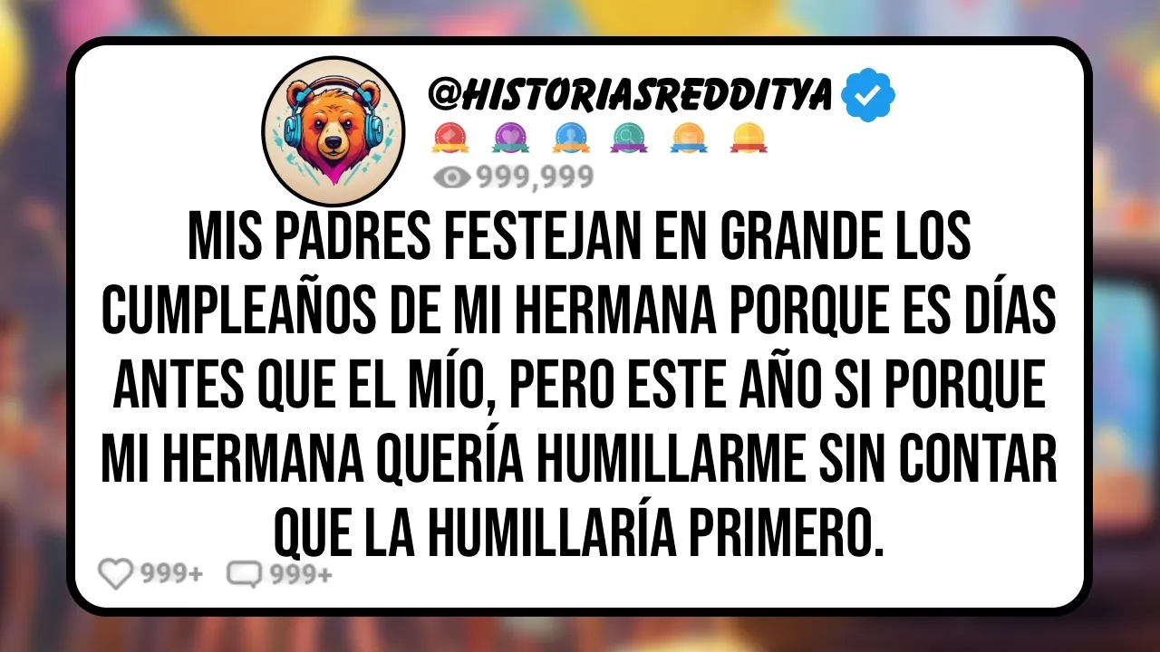 mis padres hacen una gran fiesta de cumpleaños porque mi hermana insistió para poder humillarme pero me adelanté a ella y ahora todos vieron las fotos de su teléfono Hola soy dixi tengo 18 años soy mujer y tengo una hermana mayor llamada betan de 20 años a diferencia de otras historias que he leído al menos betany tiene características para que mis padres la vean como la hija dorada No es simplemente una razón superficial lo tiene todo es superbonita superinteligente fue presidenta del Consejo estudiantil e incluso fue re del baile siempre fue la estrella la que todos