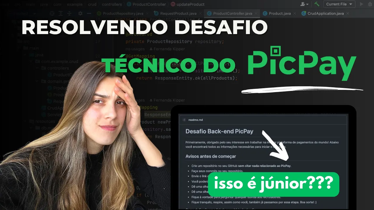 Durante o processo seletivos para vaga de desenvolvedor é muito comum que as empresas solicitem que a gente Realize um teste técnico para colocar em prova o nosso conhecimento e para ver a forma Como escrevemos nosso código e Como resolvemos problemas Então nesse vídeo A gente vai ver o desafio mercandie de um dos maiores meios de pagamento do Brasil o picpay e a gente vai resolver esse desafio para que vocês consigam treinar Para suas vagas de desenvolvedor backend então sem mais enrolações Bora para o vídeo [Música] então eu já tô com o desafio aqui aberto e