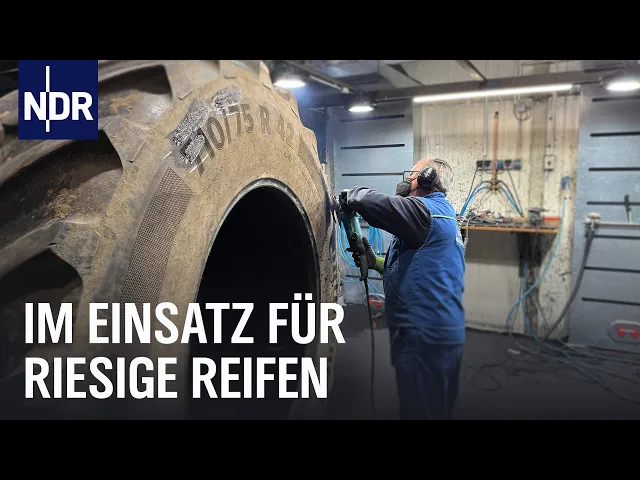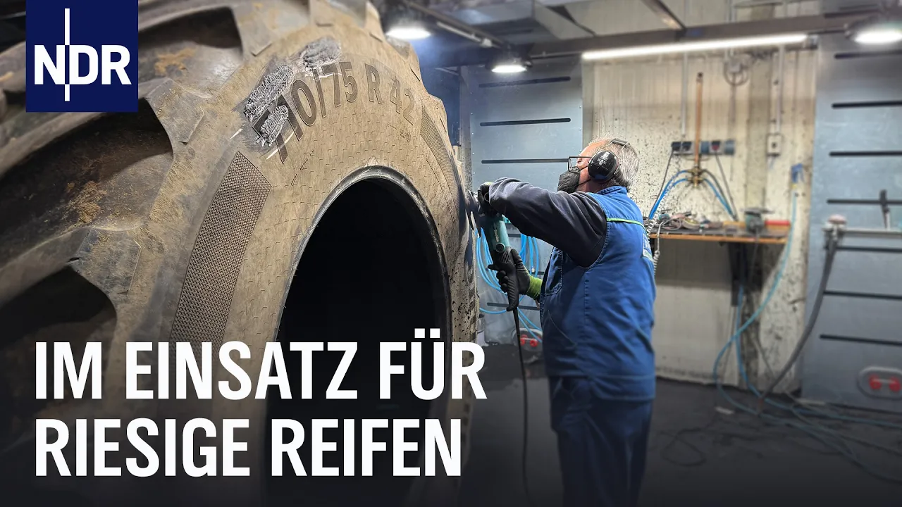 Rainer Hofdmann macht das Geschäft seit über 40 Jahren. Neben dem XXL-Pannendienst verdient er sein Geld mit der Runderneuerung von Riesenreifen. Zurück.