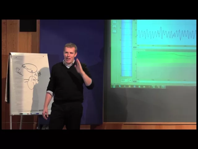 So of all the things in your breathing that you can do - if you start to control the rhythm of the breath, that will start to change the physiology, just as you've seen. And you'll start to become more coherent. So his frontal lobes will work better now than at the beginning of this trace, when his physiology was erratic, you all see the difference?