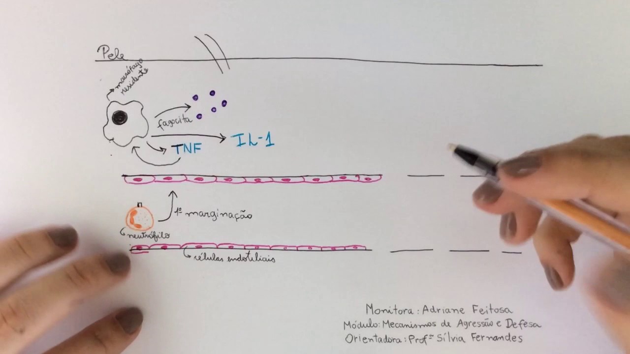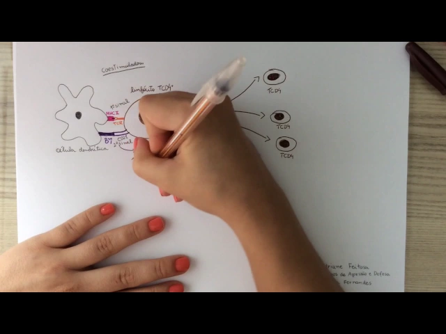 Oi meu nome é Adriane Eu Sou monitora do módulo mecanismos de agressão e defesa e a minha orientadora é a professora Silvio Fernandes nesse vídeo eu vou falar sobre a ativação dos linfócitos t e a sua diferenciação em th1 bem Tudo começa com a imunidade Ina vão ter todas as reações que nós já vimos nos GTS passados E aí a célula dendrítica que é uma apresentadora de antígeno vai fagocitar o patógeno e vai processá-lo e expressá-lo em MHC de Classe 2 e essa célula dendrítica tanto ela quanto o linfócito eles vão ser atraídos pros órgãos