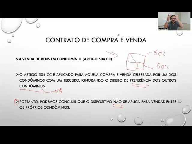 um tema de direito contratual tá o assunto referente ao condomínio ele é estudado lá nos direitos reais tá bom só que a gente precisa falar de algumas coisinhas aqui para que você possa entender então o artigo 504 ele vem e diz assim não pode um condômino em coisa indivisível vender a sua parte a estranhos se o outro com sorte ou seja se o outro condomínio a quiser tanto Portanto o condômino a quem não se der conhecimento da venda poderá depositando o preço a ver para assim a parte vendida a estranhos se o requerer no prazo