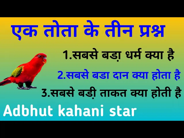 एक तोता के तीन प्रश्न। sabse bada Dharm kya hai. sabse bada Dan kya hota hai. Adbhut kahani.