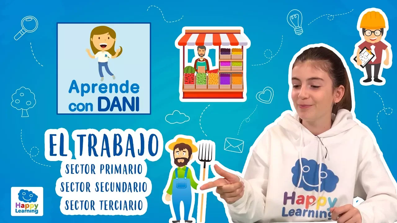 [Música] hola javi amigos con ganas de aprender soy dani y hoy quiero hablaros de algo muy importante hoy vamos a hablar de el trabajo y de cómo se clasifica bueno [Música] algunas veces habéis preguntado cómo se consiguen los alimentos la ropa y todo lo que necesitamos para poder vivir pues la respuesta es súper fácil todo eso se consigue trabajando por eso es muy importante estudiar para poder elegir bien nuestro futuro y dedicarnos a lo que nos gusta el trabajo no es ni más ni menos que cualquier actividad que las personas realizan a cambio de un