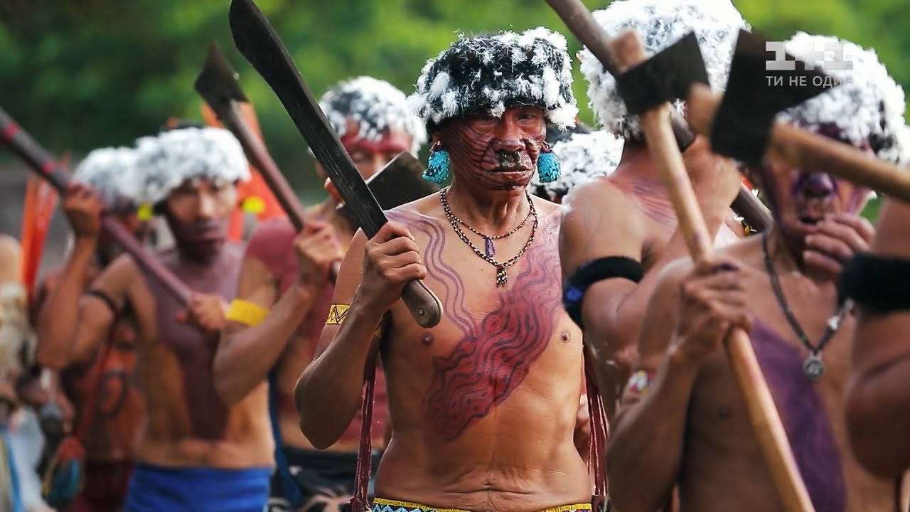 most consumed food in the tribe we are near a b tree you see a hole inside that tree up there that's where the honey they're going to take to cut a piece of wood to attach it they use it as a lead to climb up there are like thousands of bees inside this tree on one hand another Hunter is preparing a fire to make a smoking stick he's checking if these sticks are strong enough to carry a body of a person [Music] now he puts the smoking stick into the hive to calm the bees for