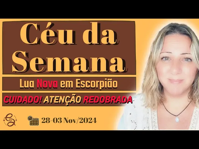 Olá pessoal aqui é Débora mexica do encontros astrológicos e hoje estou aqui para dar uma olhadinha no céu da semana para essa semana que vai do dia 28 de outubro ao dia 3 de novembro de 2024 Quais os principais aspectos doos principais eventos para essa semana que a gente tem pela frente bom gente primeiro é importante dizer que nós estamos em uma fase minguante ocorrendo no céu a gente vai ter essa fase minguante até sexta-feira dia primeiro de novembro aonde a gente vai ter a lua nova ocorrendo aqui no signo de escorpião que inclusive é