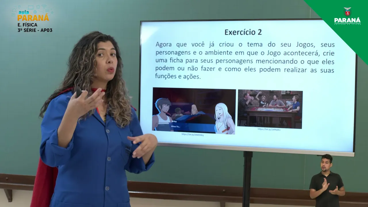 escolha um tema para seu jogo e imagine o espaço onde este poderia acontecer quais seriam as suas personagens Quais são as características de cada personagem e eles possuem alguma habilidade especial descreva imagine um cenário que você gostaria de participar de um jogo Lembrando que no RPG você não é apenas um jogador limpinho dentro do jogo Você é praticante daquela ação e num teatro no Teatro você não fica imóvel você faz interpretar papéis faz a sua a sua fala gestos e expressões corporais Então vamos lá estudando a professora vai dar um tempo para você se nós