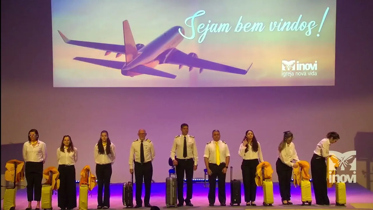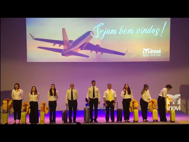 [Música] Atenção senhores passageiros do voo com destino à vida eterna essa é a última chamada dirijam-se à porta de embarque de número [Música] [Música] sete caros passageiros aqui fala o comandante Fernandes bem-vindos a Bordo de nosso voo para a vida eterna eu desejo essa tripulação que desfrutem de um voo agradável em segida o copiloto Renato F dará mais instruções caros passageiros meu nome é Renato Félix Informo que este voo Segue uma única rota Jesus que é o único caminho a verdade e a vida vamos atravessar por algumas zonas de turbulência mas tem um bom ânimo
