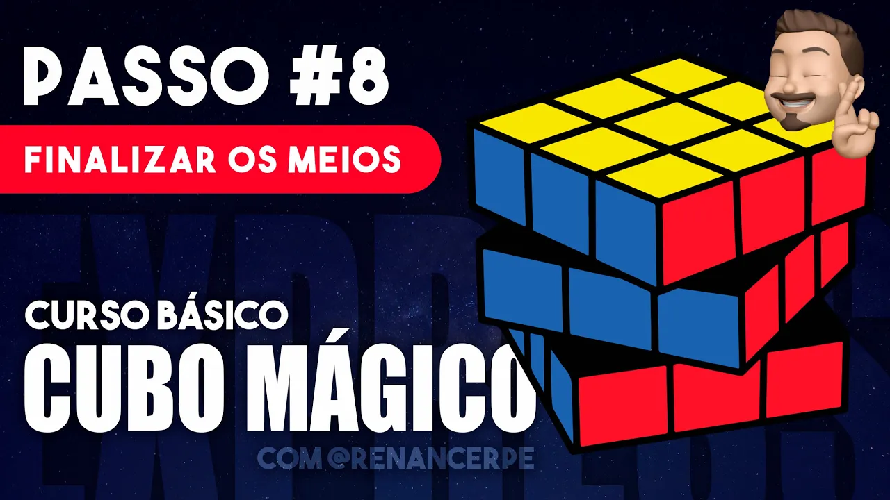 um excelente gente chegamos então finalmente o último passo do método oitavo passo hoje nós vamos finalizar os meios da última camada então seu corpo precisa estar assim todo pronto né com amarelo pronto com todas as quinas prontas faltando somente os meios para que a gente possa orientar e finalizar o google este passo dividir em duas possibilidades primeira delas é quando a gente tiver com três meios errados apenas e um lado tudo certo ou então com quatro meios errados sabendo obviamente não importa a ordem das cores importante que você identifique que seja três meios errados ou