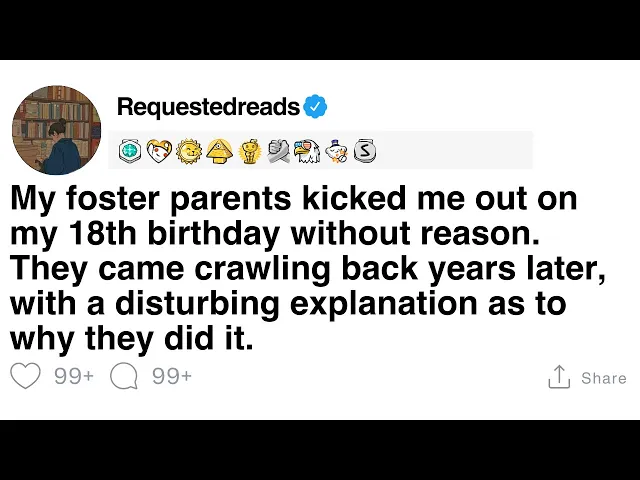 my foster parents kicked me out on my 18th birthday without reason they came Crawling Back years later with a disturbing explanation as to why they did it on the morning of my 18th birthday I was aggressively awoken by my foster dad and before my eyes were even fully open he started yelling at me to get the F out of the house he literally kicked me out of bed and as I left the room I was met with my foster mother staring daggers at me she repeated what he said and since I had nowhere to go