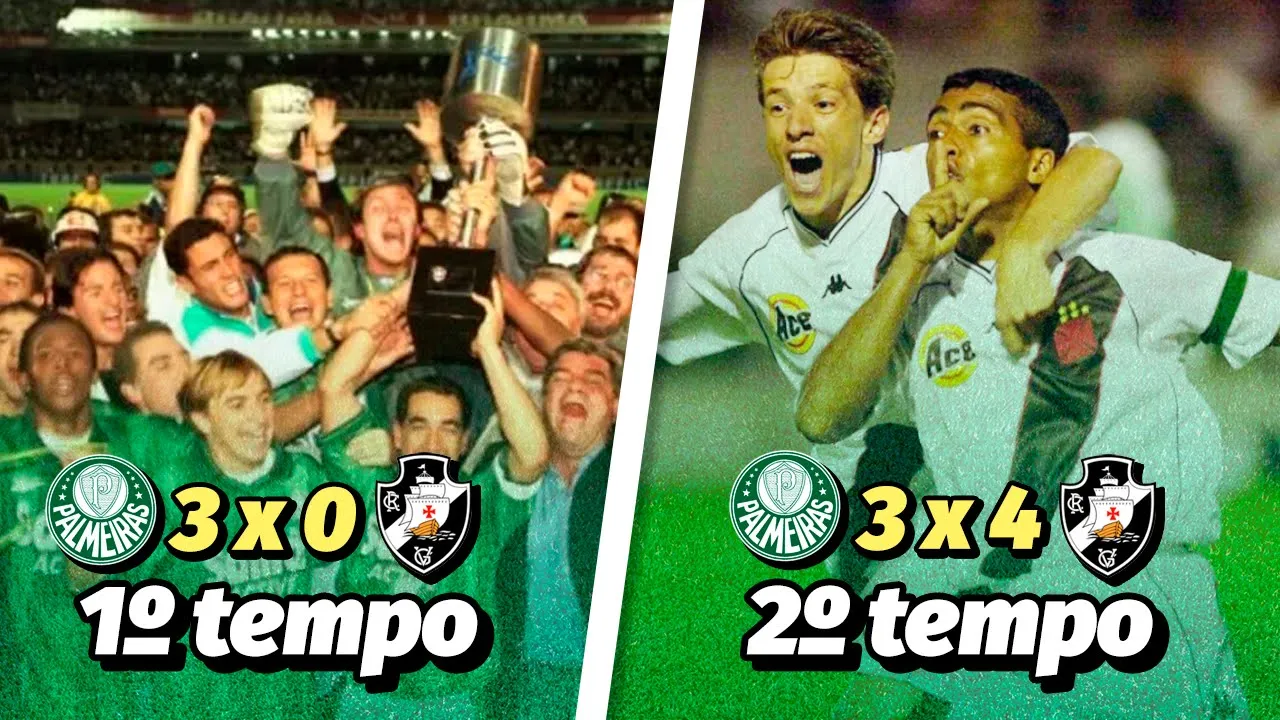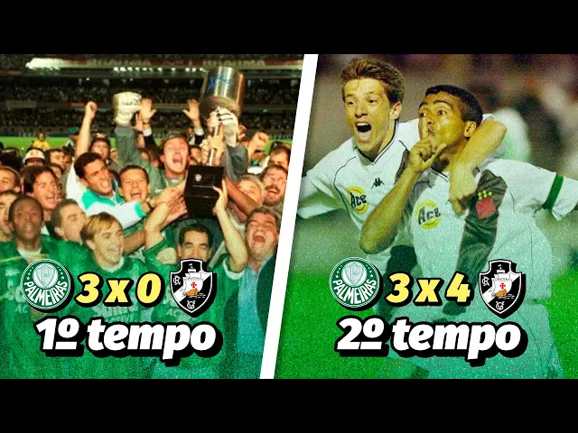 outro jogo com uma virada maior ainda no placar tipo um time está vencendo por 5 a 0 e o outro virar para 6 a 5 deve até ter mas essa final entre Vasco e Palmeiras para mim foi a maior virada da história do futebol por vários motivos primeiro aconteceu em uma final segundo envolveu dois times brasileiros terceiro teve narração do Galvão Bueno e quarto tinha Romário e Joel Santana envolvidos né duas figuras que dispensam apresentações bom acho que eu consegui te mostrar porque esse jogo foi tão e cônico E por que ele entrou para a