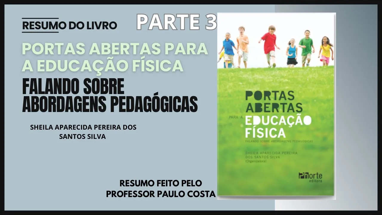 [Música] E aí Maravilha tudo certo tudo ótimo que bom vamos continuar com o estudo do livro portas abertas para a educação física falando sobre abordagens pedagógicas organizado por Sheila Aparecida Pereira dos Santos Silva publicado pela Editora forte antes de começar Se você tiver precisando de alguma ajuda com algum livro que vai cair em algum concurso que você está se preparando para realizar a prova deixa aqui nos comentários Ah e outra se você achar que esse conteúdo é importante que vale a pena dar um Valeu demais clique aí embaixo ajude e fortaleça nosso trampo beleza vamos