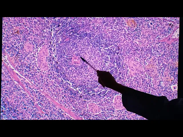 artéria central que é um vaso aqui a terra às camadas musculares que era característico de anterior em uma região ao redor então de de linfócitos em volta aqui a gente tem um conjunto que que a gente constitui a polpa vermelha que mostrar também mais detalhes aqui mostrando ainda um folheto o folículo o nódulo linfóides eles podem ser classificados como primário ou secundário o folículo anterior que eu mostrei não falei com o primário ele estava totalmente preenchido por certo linfócitos b em densos com uma coloração toda bem isolada já e se observar aqui e apresenta uma