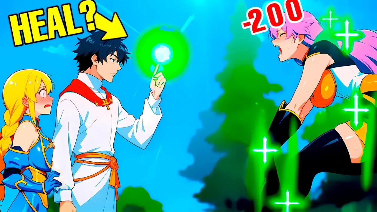 a fireball the Knight easily defends with her Shield but the protagonist gets excited thinking he'll get some free items and says since it's like that I'll help you go straight home and then uses a healing Spell and the guys are confused about what's happening what kind of healer is this why is the Healer dealing damage is he hacking the protagonist impatient says he is cheating and attacks telling them if they have a problem just report him seeing the damage his friend took the guy thinks if he takes that hit he'll end up in debt the