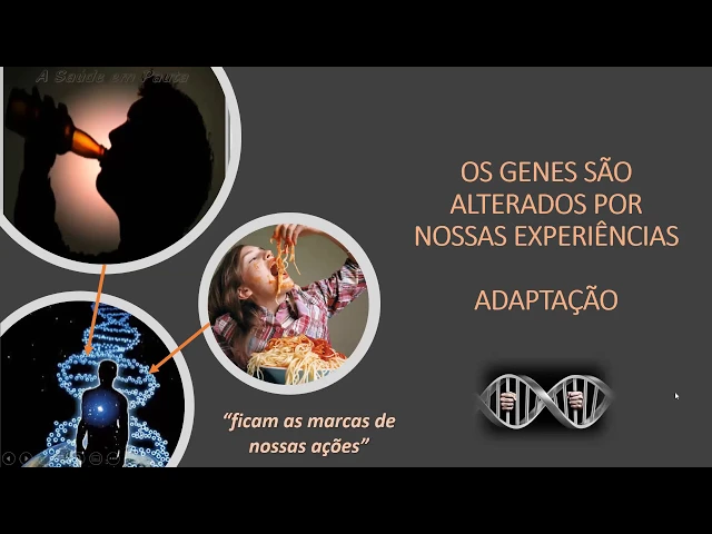 por exemplo que tipo de alimento que eu comi na minha vida inteira se eu bebi bebida alcoólica se eu não beber bebida alcoólica as experiências emocionais as experiências marcantes que eu tive durante a minha vida tudo isso fica com que registrado nesse dna é como se nós pudéssemos contar uma história da nossa vida então a gente que está acostumado a ter o dente o dna como um determinismo como algo determinante eu sou assim que meu dna e determina isso eu tenho depressão porque o meu dna de do meu pai ou da minha mãe que era