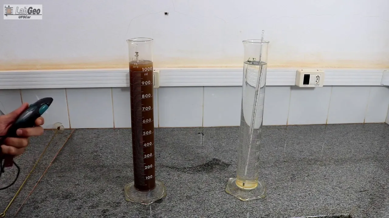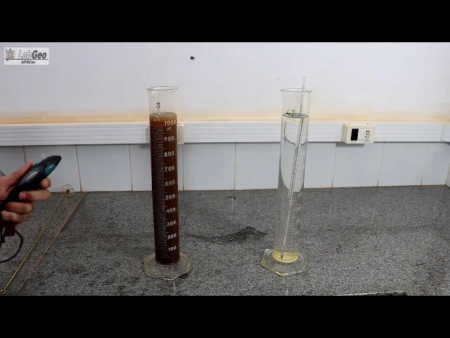 do ensaio o densímetro permanece submerso até o Templo de dois minutos após esse tempo ela é retirado da aproveita com solo e colocado na proveta auxiliar com a água destilada cerca de 30 segundos antes do tempo da leitura ou densímetro a colocado novamente na amostra de solo esse procedimento permite uma leitura mais nítida E aí [Música] E aí E aí [Música] E aí E aí E aí E aí E aí [Música] E aí [Música] e aqui em detalhe pode-se visualizar o densímetro na suspensão de solo e finalizada a última leitura que corresponde a 24 horas