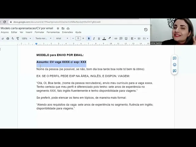 né onde você se aplica diretamente através aí de sites não precisa de carta apresentação precisa de um resumo que é uma outra coisa que a gente alimenta e tem ainda aquelas vagas que todo mundo gosta que aí viu por e-mail Então essa Card apresentação ela serve para isso para você de forma estratégica utilizando já de palavras-chaves experiências que você tem de uma forma bem legal do seu jeitinho para poder fazer essa apresentação via e-mail entendeu então eu quero mostrar aqui para vocês o modelo onde vocês vão ter acesso lembra que na primeira aula eu falei