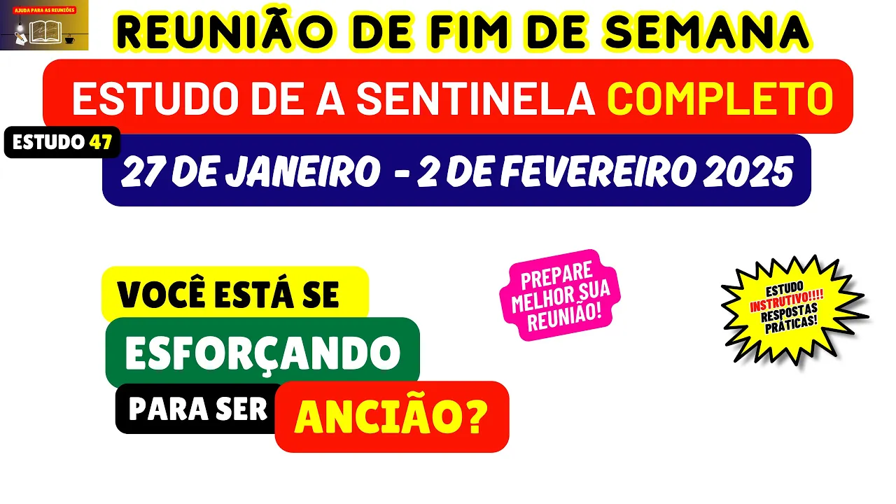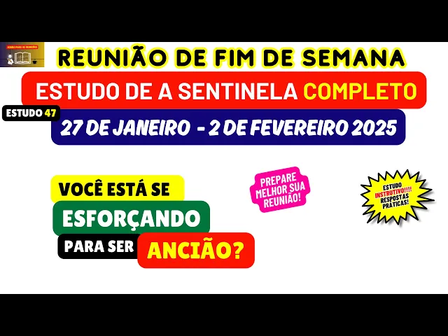 nesse vídeo nós vamos analisar e preparar o estudo 47 da revista Sentinela este artigo vai ser considerado na reunião deste fim de semana 27 de janeiro a 2 de Fevereiro fazendo um breve comunicado Caso vocês queiram passar toda essa preparação para os seus dispositivos acessem nosso site nosso blog lá vocês encontrarão tanto a resposta chave como também a resposta completa dos parágrafos mais explicativa mais embasada então fiquem à vontade incentivamos também para aqueles que ainda não fizeram se inscreva no nosso canal deixe um gostei um comentário quando você comenta você mostra para o YouTube que
